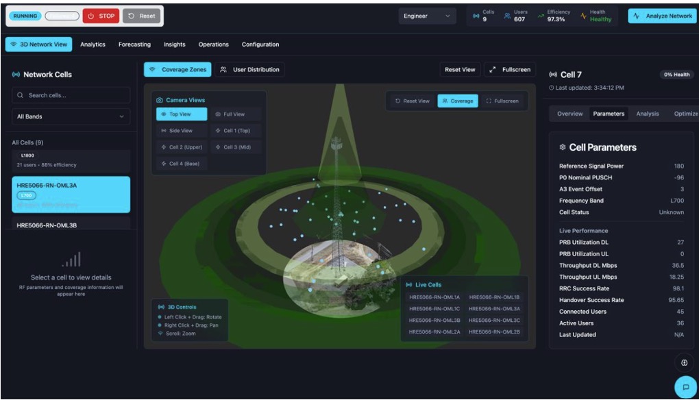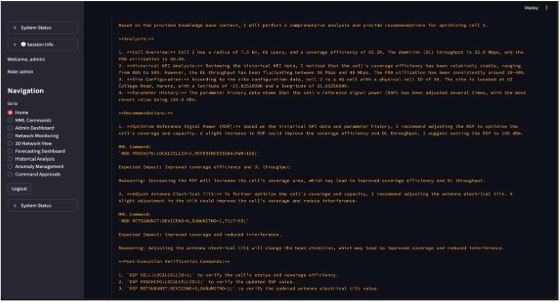 - AI Recommendation Engine — Suggests optimal parameter configurations, such as power and tilt adjustments, evaluated by risk and expected gain.